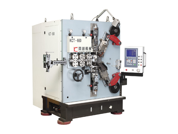 Our company's KCT-660 six axis CNC High-speed spring coiling machine is composed of 6 Japan Yaskawa servo motor and etwo computer control system, each axis can operate independently or simultaneously into synchronous operation; spring forming technology to create a company of years of sedimentation, enhance the man-machine conversation ability, with a minute spring forming processing, with fast forming speed, precision, low noise and save time and material cost of debugging, can realize the function of cutting, cutting straight cut and swing cutting from different angles, with HD video length measurement function.